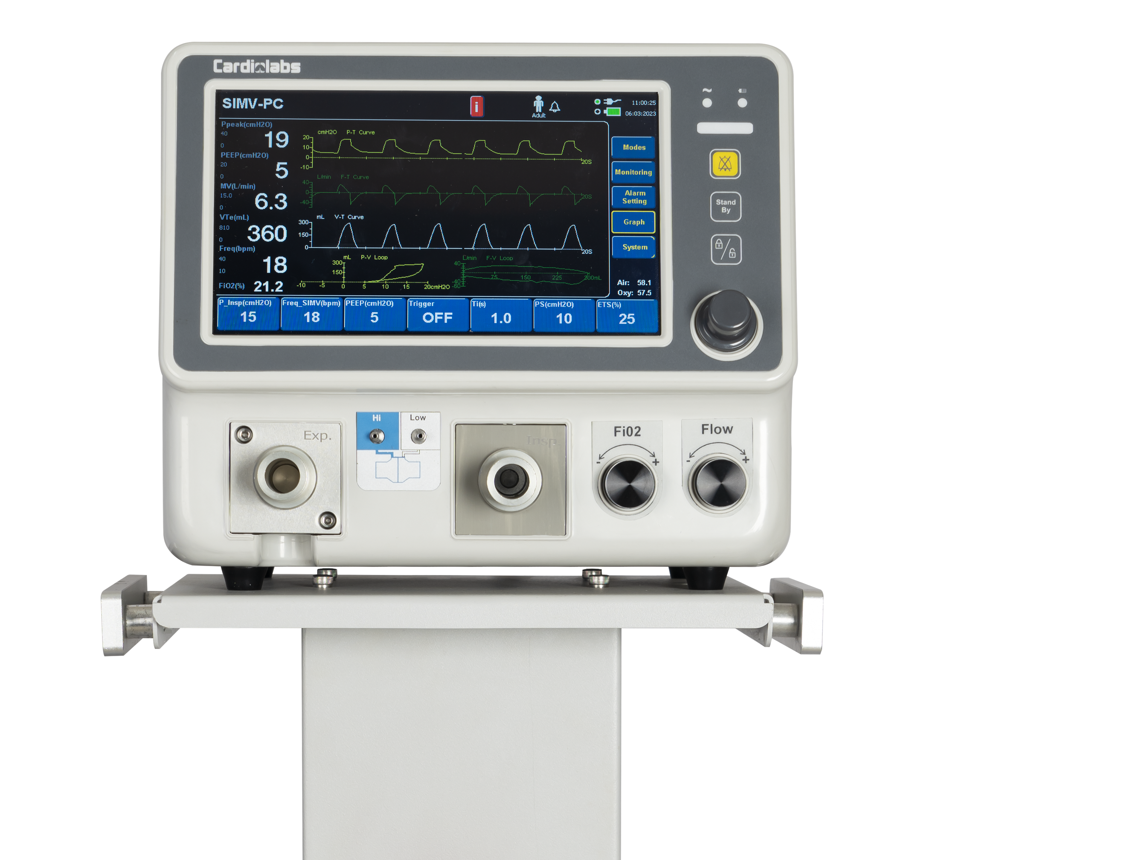 - Invasive Modes:Invasive : VCV, SIMV-VC, PCV, SIMV-PC, PSV/CPAP + Apnea Backup, Non-Invasive: BIPAP,BIPAP-ST,HFNC\O2 Therapy